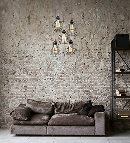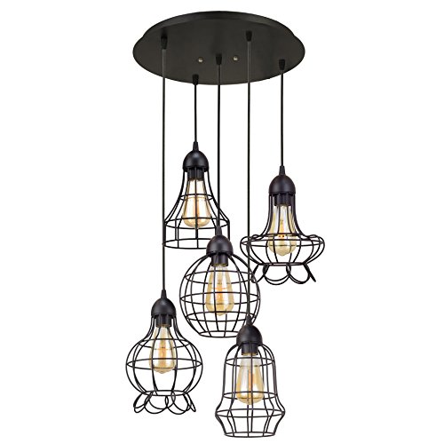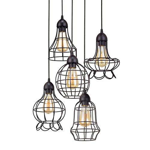 (5) unique industrial vintage metal cage shades + hand-brushed black finish + 91" of adjustable wire