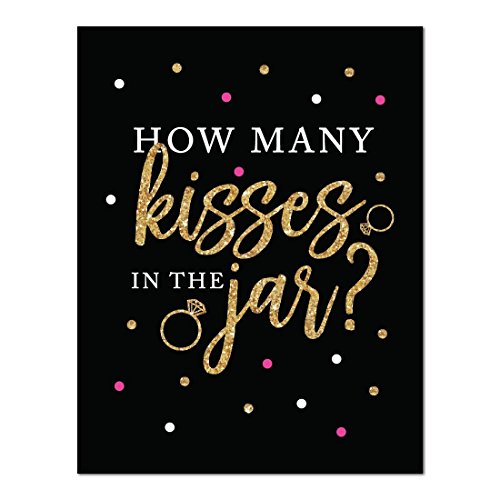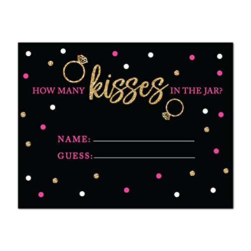 Andaz Press Black, White, Hot Pink, Gold Glittering Bachelorette Party Bridal Shower Collection, How Many Kisses are in the Jar Game Cards, 30-Pack