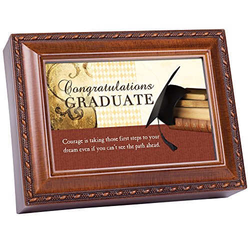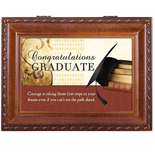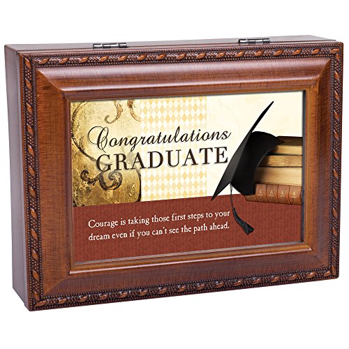Congrats Graduate Cottage Garden Wood Grain Finish Jewelry Music Box - Plays Song Pomp and Circumstance