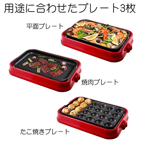 상품명: muymucho 멋쟁이 3WAY 콤팩트 쿠킹 핫 플레이트 ( 타코야끼 플레이트 구부착 불고기 플레이트 평면 플레이트) 레드