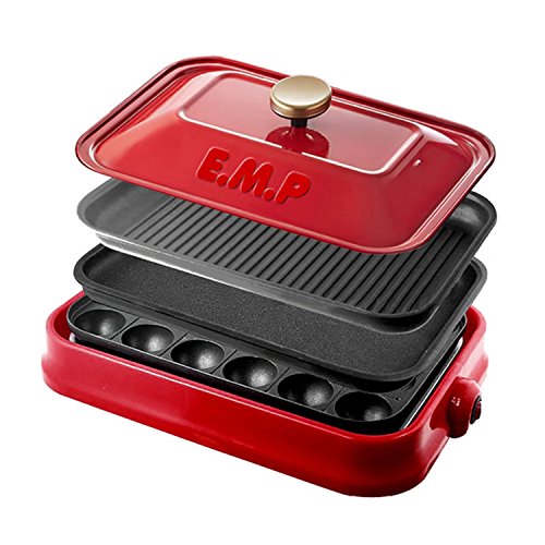 《무이무초》 muymucho 멋쟁이 3WAY 콤팩트 쿠킹 핫 플레이트 ( 타코야끼 플레이트 구부착 불고기 플레이트 평면 플레이트) 레드