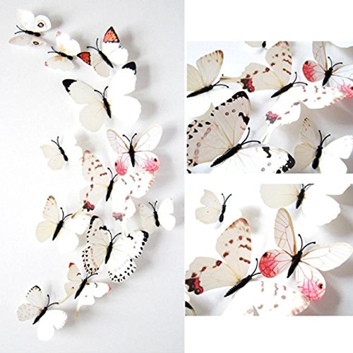 -. Feature : 100% brand new and high quality. Quantity: a set Material: PVC Color: White Size: 2pcs x 12cm, 2pcs x 10cm, 4pcs x 8cm, 4pcs x 6cm. / There are 24 kinds of butterfly style. One set is 12 pcs 3D butterfly stickers mixed packing, perfect design. The Butterflies come with magnet and glue easy to use. / Comes with Tack and got magnet in the body of the butterfly, can be applied on all smooth surfaces, such as walls, doors, closets, plastic, metal, fridges, laptops, TV, cars and so on. / It is A perfect gift for any special occasions like Christmas, wedding, birthday, anniversary, engagement, new baby, 18th 21st, graduation, retirement or just a token of love. / Package Include: 12pcs Sticker Art Design Decal Wall Stickers Home Decorations 3D Butterfly.