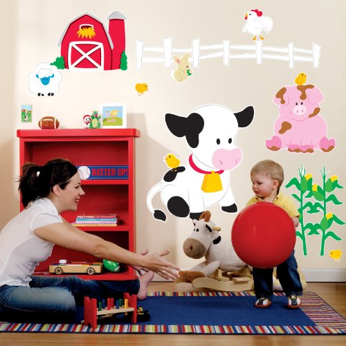 -. Feature : Includes (1) package of giant wall decals with squeegee for installation and care. Decals made of vinyl and vary in size. / Add matching tableware, favors, accessories, or a party kit bundle to complete your farm or barnyard birthday party! / Features favorite barnyard animals including cows, pigs, and sheep!