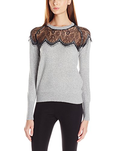 Pullover sweater featuring illusion lace yoke with scalloped cutwork trim