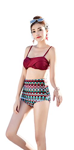 -. Title : PSYCHE (サイケ) レディース 水着 ビキニ バンドゥビキニ 体型カバー ハイ‐ウエスト ショーツ セクシー ホルターネック 花柄 シンプル