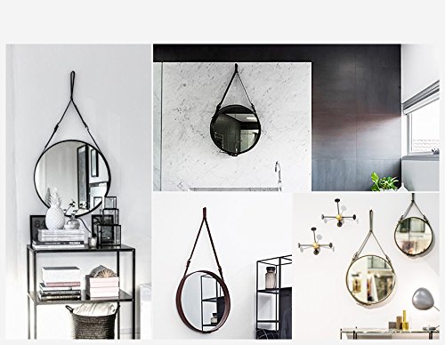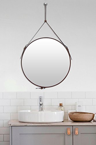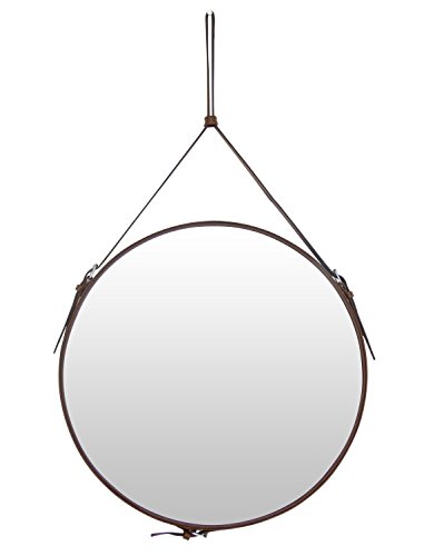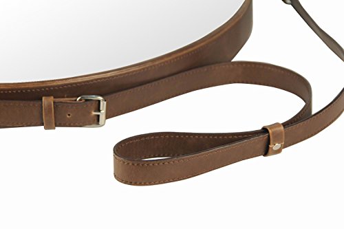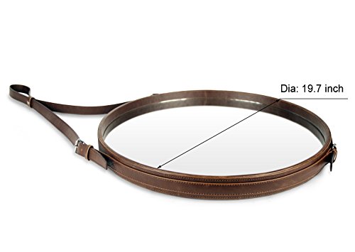Ms.Box Faux Leather Round Wall Mirror Decorative Mirror with Adjustable Hanging Strap, Diameter 19.7 inch, Brown