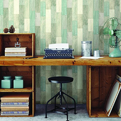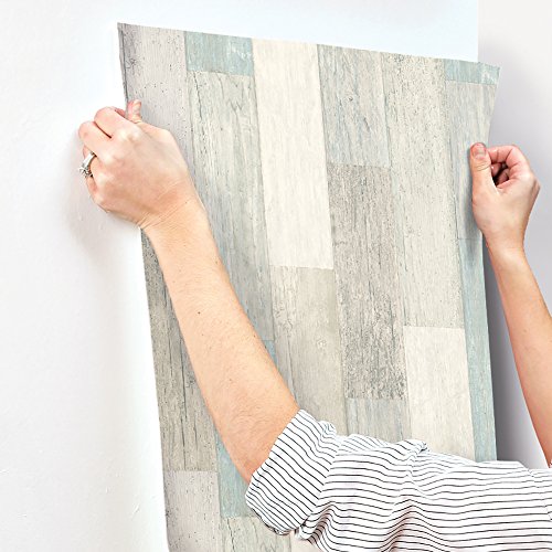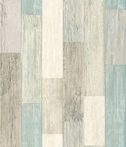 RoomMates RMK10840WP Coastal Weathered Plank Peel and Stick Wallpaper, 20.5" x 16.5 feet, Blue/Tan