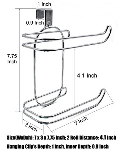 Fit for tank with a at least 7 inch width, the dept of hanging over toliet tank is 1 inch(inner dept is 0.9 inch),the distance between 2 layer is 4.3 inch, please check it before purchase
