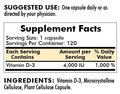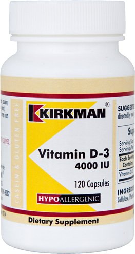 -. Binding : Health and Beauty -. Brand : Kirkman Labs -. EAN : 0812325021703 -. Feature : Supports the immune system and provides many other health benefits. / STORE IN A COOL DRY PLACE AND TIGHTLY CAPPED. KEEP OUT OF THE REACH OF CHILDREN. / Vitamins / Capsules / 120 ct -. Label : Kirkman Labs -. LegalDisclaimer : These statements have not been evaluated by the Food & Drug Administration. This product is not intended to diagnose, treat, cure or prevent any disease. -. Manufacturer : Kirkman Labs -. PackageQuantity : 1 -. ProductGroup : Health and Beauty -. ProductTypeName : HEALTH_PERSONAL_CARE -. Publisher : Kirkman Labs -. Size : 120 ct -. Studio : Kirkman Labs -. Title : Vitamin D-3 4000 IU Capsules - Hypo -. UPC : 812325021703
