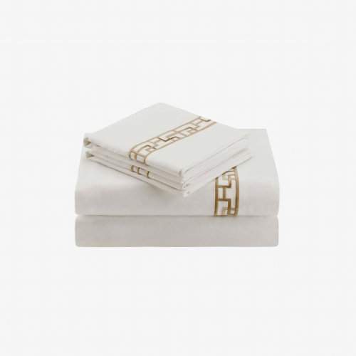 Natori Ming Fretwork Flat Sheet, Queen, White with Champagne Embroidered