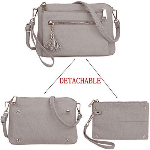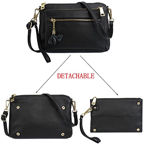 -. Feature : A clutch size purse made from Cowhide Leather. 7 compartments with a wrist strap and a shoulder chain for multipurpose carry. / Shiny gold-color hardware, heavy duty zipper and detailed contrast stitching brightens up the wallet. / Special 2-in-1 Detachable Design. This bag can be separated into a small crossbody bag and a wristlet wallet. Both of them can be used alone. / 7 compartments is designed for you to keep your cash, cards ,makeups,and smartphone oraganized well and easy to use. / Dimensions: 8.66"(L) x 5.11"(W) x 1.77"(H),Come with a wrist strap and a shoulder strap(52.55").