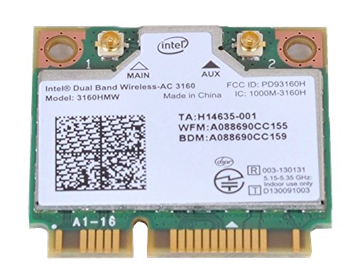 -. Binding : Personal Computers -. Brand : Intel -. EAN : 0012024017117 -. Feature : Mounting Screws Included / Supports A/B/G/N and AC Bands at 2.4Ghz and 5.8Ghz. / 1/2 Height Mini PCIe form factor / Transfer speeds of 433 Mbs via 1 x 1 TX/RX Streams / Includes Bluetooth 4.0 with Smart Power Optimizer -. Label : Intel -. Manufacturer : Intel -. Model : 3160.HMWG.R -. MPN : 3160.HMWG.R -. PackageQuantity : 1 -. PartNumber : 3160.HMWG.R -. ProductGroup : Personal Computer -. ProductTypeName : NETWORKING_DEVICE -. Publisher : Intel -. Studio : Intel -. Title : Intel 3160.HMWG.R Dual Band Wireless AC + Bluetooth Mini PCIe card Supports 2.4 and 5.8Ghz B/G/N/AC Bands with Mounting Screws -. UPC : 012024017117
