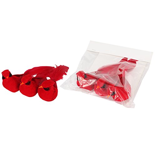 -. Feature : Set of 3 red cardinals with clips for positioning on trees, in wreaths and arrangements / Each bird is 8.25 inches long x 3 inches high x 2.25 inches wide / Red velvet flocked birds with real feathers on wings and tail