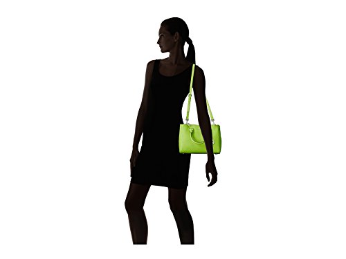 13" W x 9" H x 5" D Interior features 2 side zip compartments, open compartment with zip pocket, 4 slip pockets and key fob Magnetic snap closure Logo medallion key chain; silver-tone hardware