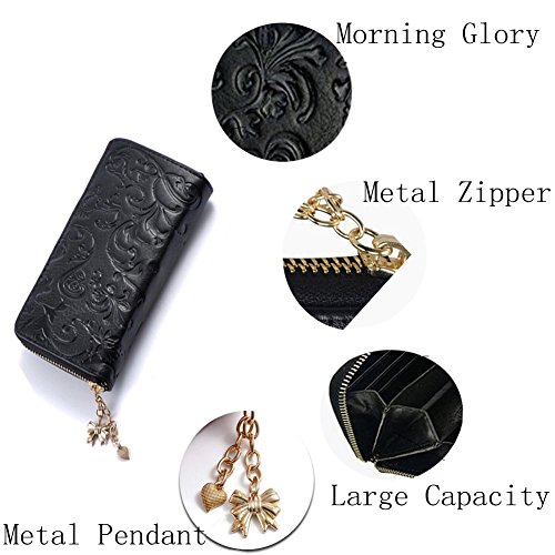1.*Let's Look This Excellent Product: -->Type:Square cross-section -->Size:19cm x 9cm x 2.5cm/7.5in x 3.5in x 1in. -->Color:Black -->Material:High-quality Genuine Leather,fashionable with Morning Glory Flowers pattern design.Zipper opening/closing makes access to your phone and cards convenient while keeping everything safely inside. -->Features:Vintage wallet pouch to comfortably fit cards, IDs, cash, receipts, phone 5s and phone 6 ect. -->Occasions for gifts:Advertising and promotion,business gifts,holiday,housewarming,birthday,travel. -->A perfect present for friends,families,lovers etc. 2.* High Quality Products And Great Customer Service --> Customer satisfaction is our top priority,Please do not hesitate to contact us if this item does not meet your expectations. 3.* We will provide the Following Contents: --> 1PC Wallet 0