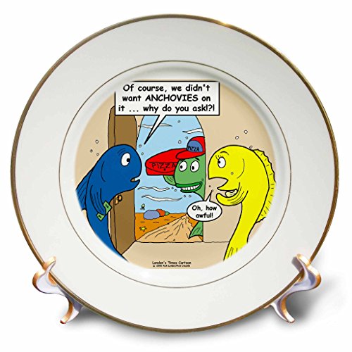 3dRose cp_3026_1 Fish Ordering Pizza Without Anchovies Porcelain Plate, 8"
