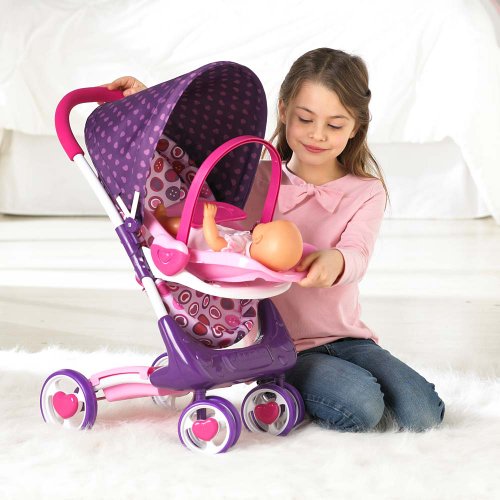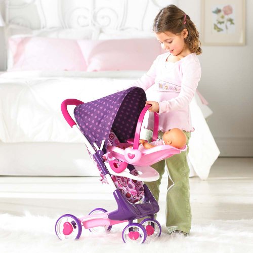 Tag und Nacht kann hiermit die Lieblingspuppe oder das Kuscheltier versorgt werden, denn ganz nah ist sie im Puppenwagen, im Autositz, im Hochstuhl und im Bettchen.