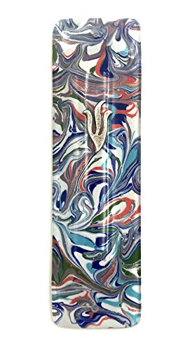 Marbled Tie Dye Art Glass Mezuzah - Gift Box and Non-Kosher Scroll Included - Hand Made in USA by Tamara Baskin Art Glass