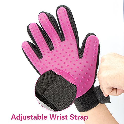 Direction: 1) Simple place the gloves comfortably on your hands and adjust the tightness of the strap to provide the secure fit and start grooming your pet with rubber side; 2) Just stroke your pet, the glove picks up all loose hair. The hair sticks to the gloves, making it easy to peel and throw away hair after dog and cat grooming; 3) You can clean your gloves with warm water and a mild soap, remove excess water by gently squeezing the glove and let air dry.
