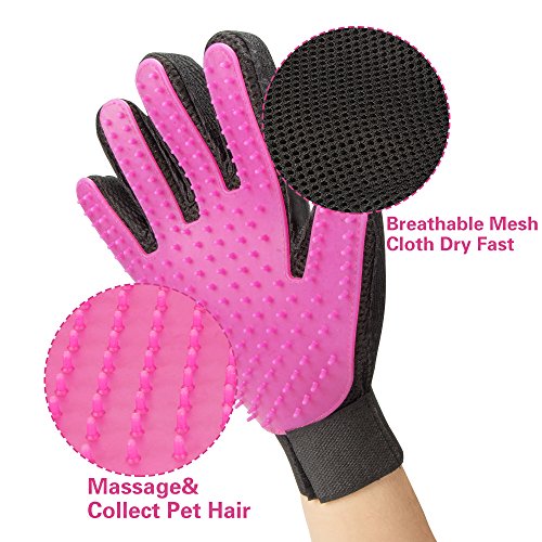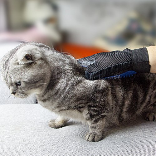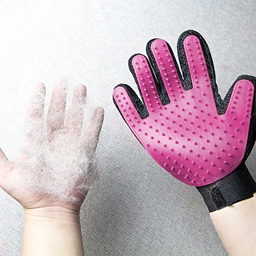 Pet Grooming Glove with soft silicone tips mimics the touch of hand for a gentle massage for short, medium, short or curly haired dogs and cats. As hair sticks to the glove, you could simply peel off and throw hair away, hence minimize shedding hair and keep your house clean.