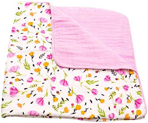 Little Unicorn Cotton Muslin Blanket Quilt - Berry & Bloom, Purple, Pink, Yellow