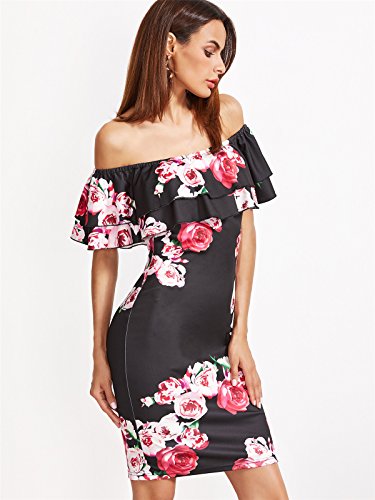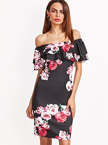 Title : Floerns Women's Black Floral Print Off The Shoulder Ruffle Dress Medium Black