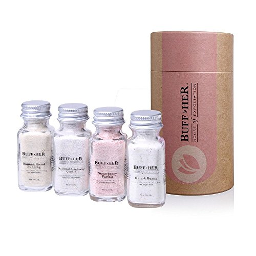 - Recommended for all skin types, Contains Banana Bread Pudding, Oatmeal Blueberry Cookie, Strawberry Parfait, and Rice & Beans Organic Exfoliating Scrub