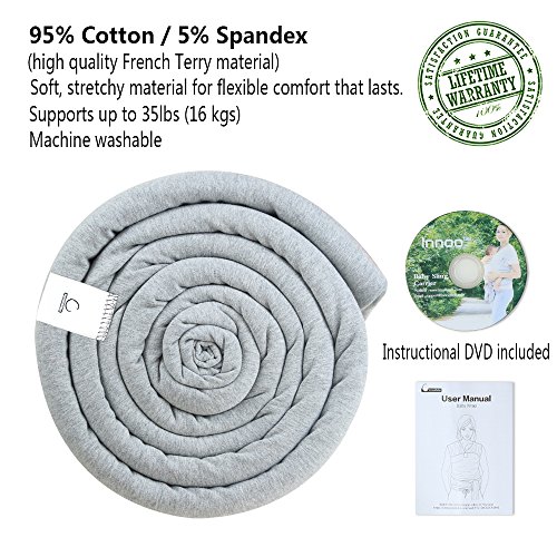 Innoo Tech Baby Sling Carrier Natural Cotton Nursing Baby Wrap Suitable for Newborns to 35 lbs Lifetime Guarantee Breastfeeding Sling Baby Holder...
