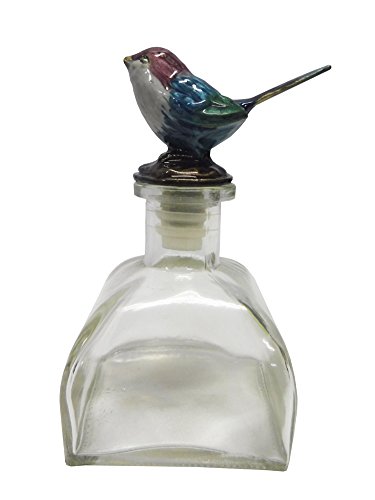 -. Title : Decorative Glass Bottle with Pewter Bird