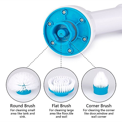- Detacheable Brush heads:Comes with 3 types spin scrubber brush heads,which include flat brush head,half bulb head,corner brush adjust to your all cleaning needs,and the charger, extendable handle,usage instruction.