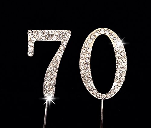 70th Birthday / Wedding Anniversary Number Cake Topper with Sparkling Rhinestone Crystals - 1.75