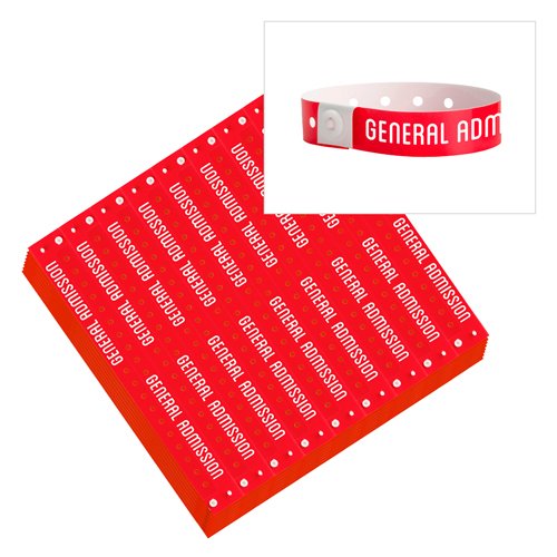 -. Title : Neon Red General Admission - Wristco Plastic Wristbands - 500 Ct.
