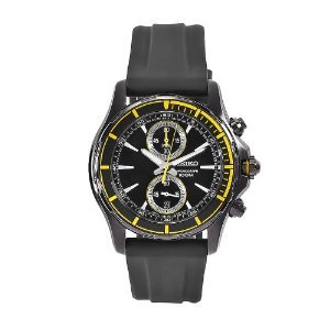 세이코부터의 이 때계는 제시합니다,하나로,모든 스테인레스강의 경우 및 검은 고무 가죽 끈.