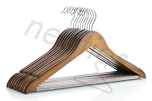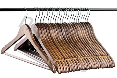 -. Title : Light Chocolate Everyday Wood Hangers with Non-Slip Bar and Notches, Super Sturdy and Durable Wood, 24 pack
