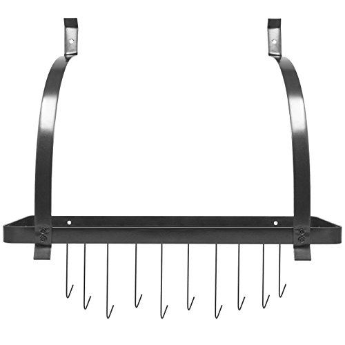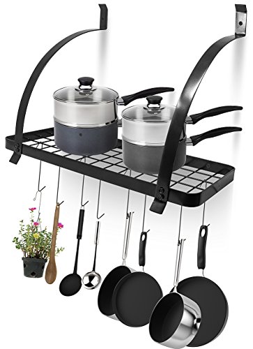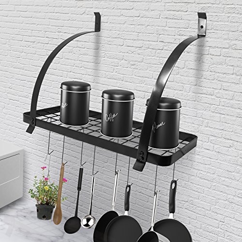 Sorbus Kitchen Wall Pot Rack with Hooks — Decorative Wall Mounted Storage Rack — Multi-Purpose Shelf Organizer Great for Kitchen Cookware, Utensils, Pans, Books, Household Items, Bathroom (Black)