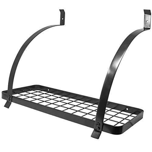 - EASY TO ASSEMBLE — Minimal assembly required with quick set-up — Support brackets can be installed to support the rack from above or below — Made of steel with powder-coated finish — Beautiful decorative curved frame for stylish look — Complements most light fixtures, appliances, cookware, and design interiors — Package includes grid rack with 2 support brackets, 10 hanging hooks, and mounting hardware — Measures approximately 24.25" L X 10" W X 19" H