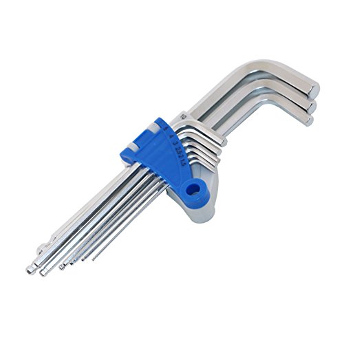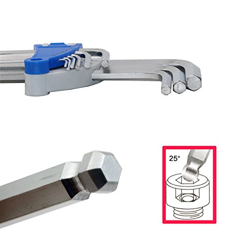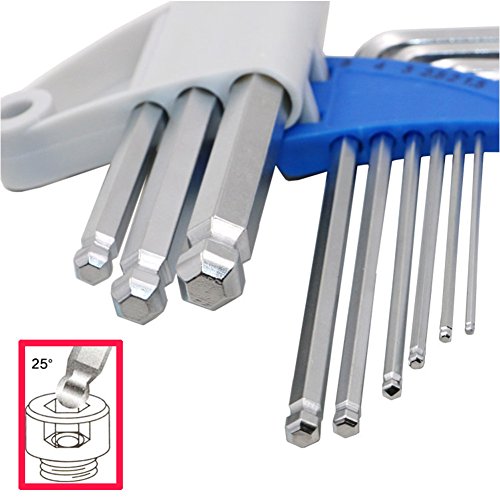 The ball end design of this Long Arm Ball Hex Key Wrench Set allows up to a 25 degree entry angle so you can easily reach around obstructions.