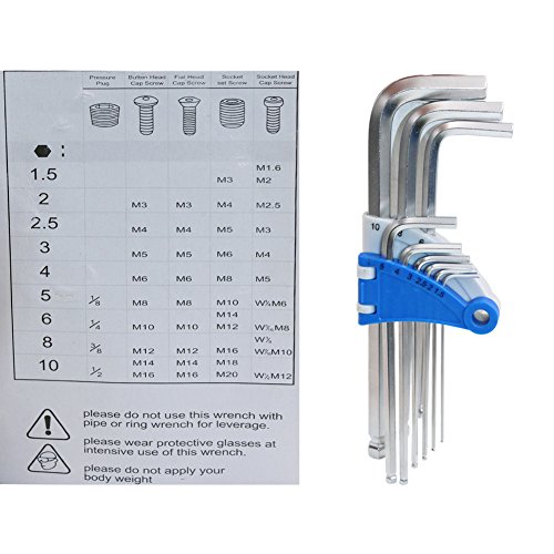 It features the most common metric hex wrench sizes for cars and trucks, machinery, bikes, lawn equipment, appliances, and furniture.