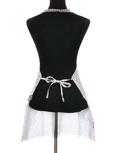 - Title : niceeshop(TM) Flower Double Plaid Bow Lace Ladies Polk Dot with Pocket Housewife Cooking Apron,Pink