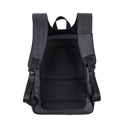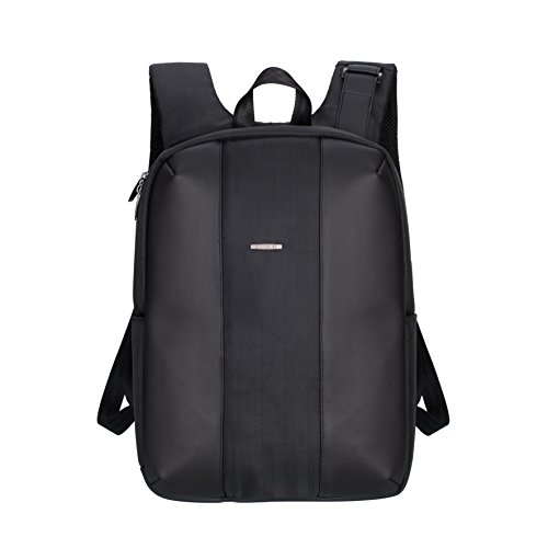 Neat and professional lightweight computer backpack made of durable vegan leather combined with sturdy waterproof tweed-like PS fabric, size 15.7 x 11.4 x 2.7