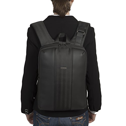 Protective padding on all sides and bottom of main compartment fitting laptops up to 13.9” x 10.2” x 1.4”, extra space for papers and notebooks
