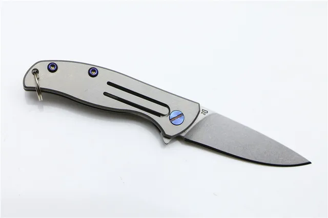 미니 작은 칼 d2 블레이드 곰 헤드 접는 칼 titanium 야외 캠핑 사냥 포켓 과일 부엌 칼 edc 도구