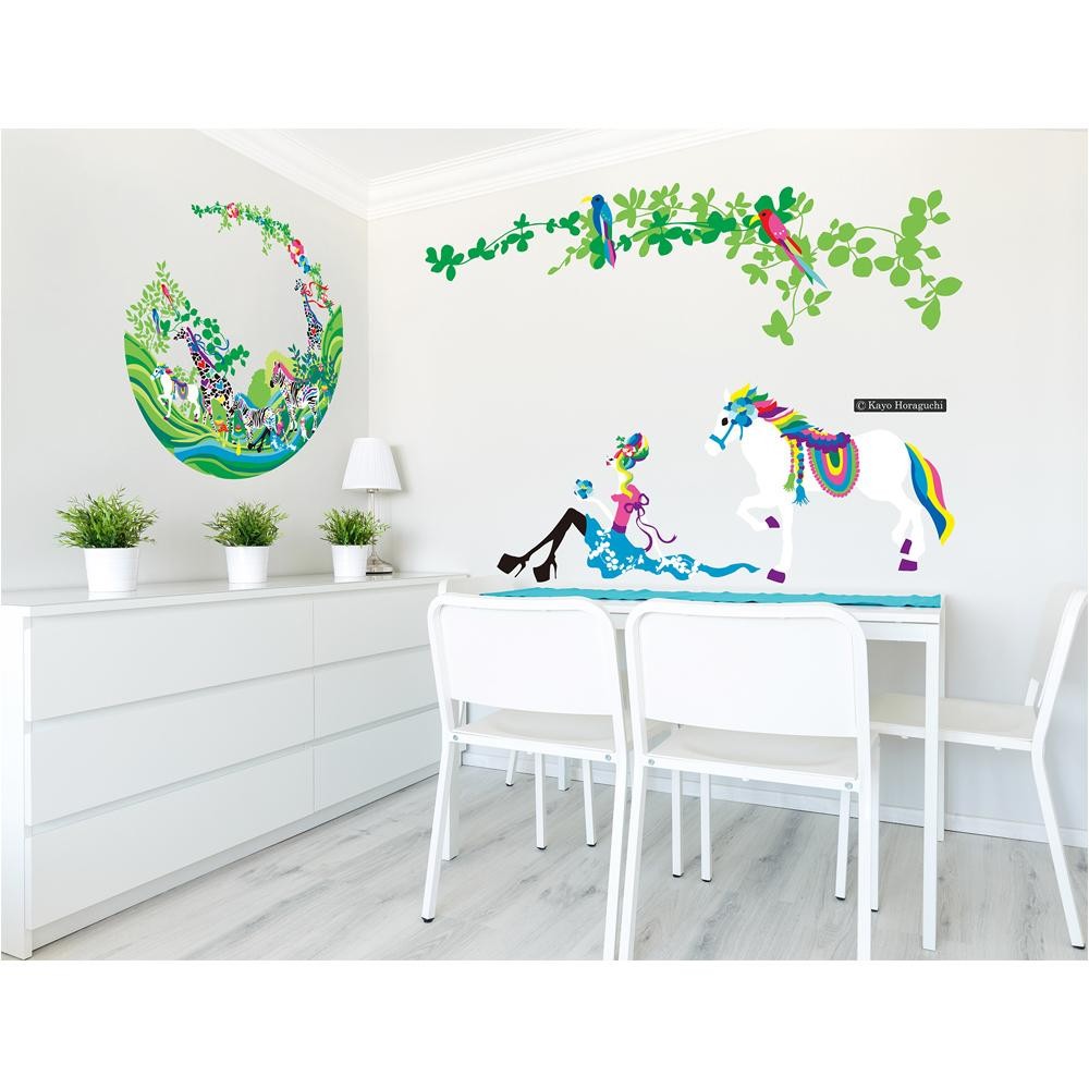 壁に貼るだけで美しい緑とメルヘンな世界をお楽しみいただけるウォールステッカーです。リビングなどのアクセントにどうぞ!