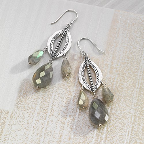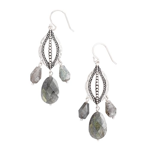 -. Feature : Each Flora Earring boasts three faceted drops in varying shades of bezel-set gray labradorite totaling 25 1/10 ct; each stone hangs down from impeccably detailed sterling silver / THE NEW WEST: Add a piece of southwestern inspired jewelry to your ensemble and you'll feel like you're instantly transported to an Albuquerque craft fair or taking in the Phoenix architecture. Southwestern-inspired jewelry is known for its Navajo or Native American patterns, fringes, tassels, warm and earthy colors. The jewelry is crafted in sterling silver with the occasional brass and copper accents, and is accompanied by turquoise, howlite, lapis, agate, coral and other semiprecious stones. / LABRADORITE: This stone's aggregate layers refract light as iridescent flashes of peacock blue, gold, pale green or coppery red / STERLING SILVER: Silpada's signature metal is known amongst jewelry wearers for its strength, brightness, and shine; all Silpada earrings feature sterling silver back-findings (regardless of the prominent metal of the piece) for decreased risks of allergic reactions and tarnish residue on skin / Earrings measure 2 1/2 by 1/2 inches, finished with French-wire back-findings