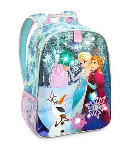 -. Binding : Electronics -. Brand : Disney -. Color : Blue -. EAN : 0733520745129 -. Feature : Disney Store Frozen backpack that lights up! / Clear vinyl front with Anna, Elsa, and Olaf screen art and glitter background / Double zip top closure with metallic fabric pulls. Padded back. / For ages 3+ / Dimensions 16'' H x 12'' W x 5'' D -. Label : Disney -. Manufacturer : Disney -. Model : 5771278 -. MPN : 5771278 -. PartNumber : 5771278 -. ProductGroup : PC Accessory -. ProductTypeName : COMPUTER_COMPONENT -. Publisher : Disney -. Studio : Disney -. Title : Disney Frozen Light-Up Backpack with Anna, Elsa and Olaf -. UPC : 733520745129