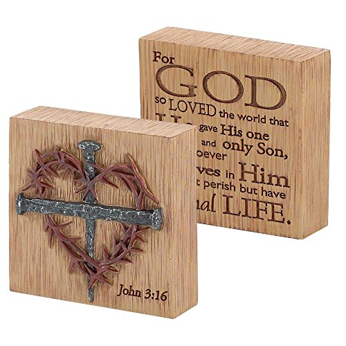 God So Loved John 3:16 Nail Cross and Thorn Heart 3 inch Table Plaque Sign