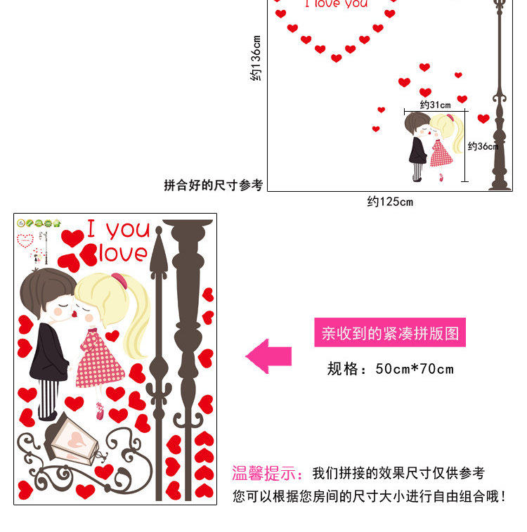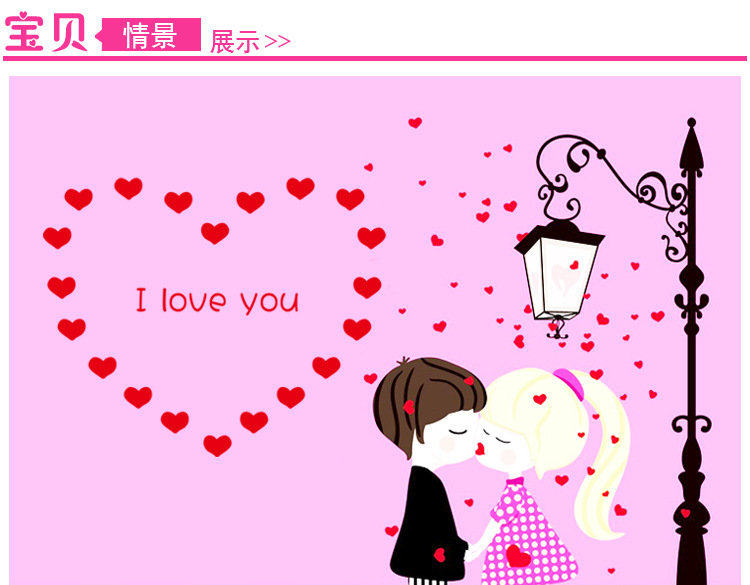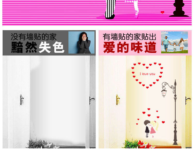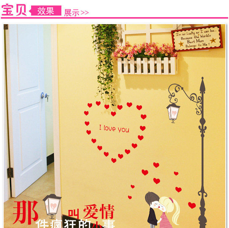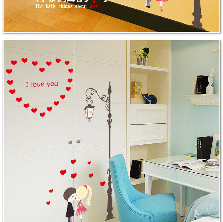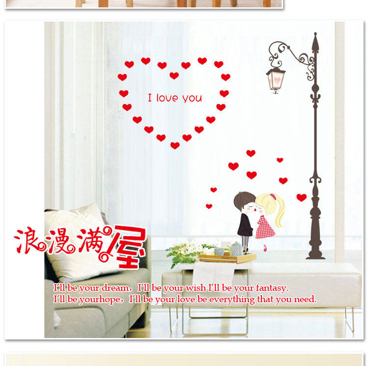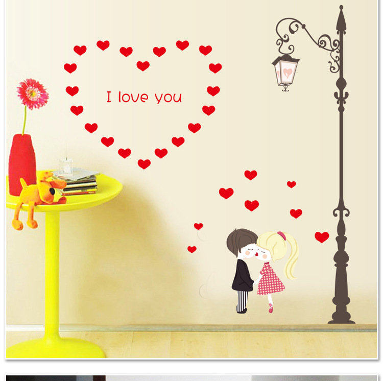墙贴卧室温馨床头可移除贴纸路灯下的情侣创意墙纸