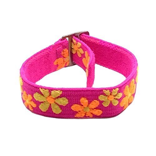 -. Feature : Orange & Yellow Flowers Design. / 16mm Adjustable and Washable Elastic Fabric Strap. / Perfect for little wrists - comfortable too - Safety Stainless Steel Silver Clasp. / Length from end to end = 8 inches = 20 cm = 200 mm. However, this watch band is made out of elastic, which means that it can stretch to accommodate larger adult wrists comfortably. / Will also fit the following Timex Youth Analog Watches: T7B151, T89022, T89001, TW7B99500, TW7C059009J, TW7B99400. The elastic band makes it easy on and off, but not so much that it will slide off by itself. In addition to fitting on Timex Youth watches, this strap can practically fit on any watch measuring 16mm at the end lugs, and it is long enough that an adult can wear it comfortably.