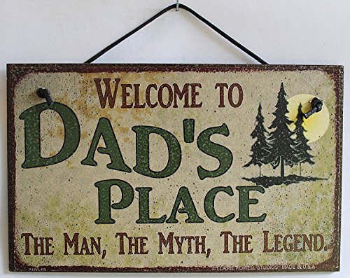 5x8 Sign with Pine Tree's Saying "Welcome To Dad's Place THE MAN, THE MYTH, THE LEGEND." Decorative Fun Universal Household Signs from Egbert's Treasures