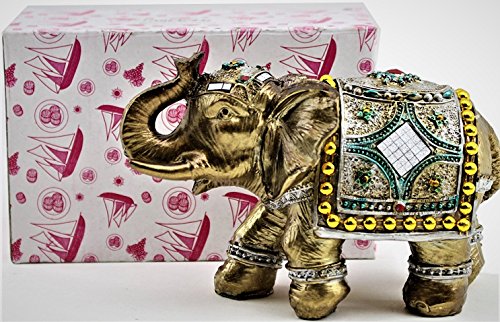 Feng Shui Brass Color 6" Elegant Elephant Trunk Statue Wealth Lucky Figurine Home Decor Gift US Seller (14832)